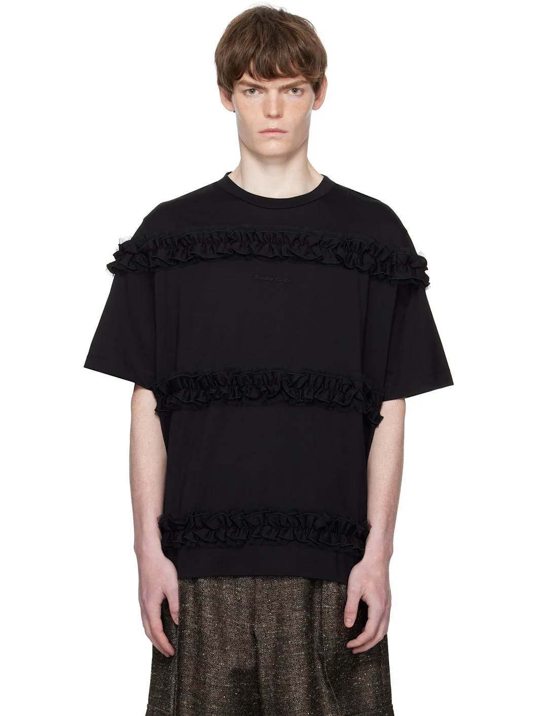Cotton jersey T-shirt. · Oversized · Rib-knit crewneck · Logo embroidered at chest · Ruffled jersey and mesh trim at front and sleeves Supplier color: Black/Black Body: 100% cotton. Trim: 100% polyamide. Made in Portugal 252405M213027