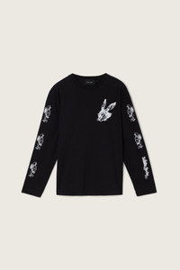 A long sleeve t-shirt featuring a new interpretation of the Simone Rocha logo with narrative illustrations in our classic unisex t-shirt fit. Product Details Cotton jersey long sleeve graphic t-shirt - Artwork by Oscar Torrans Composition: 100% Cotton SKU: 5194P51-M 0569 BLACK/WHITE
