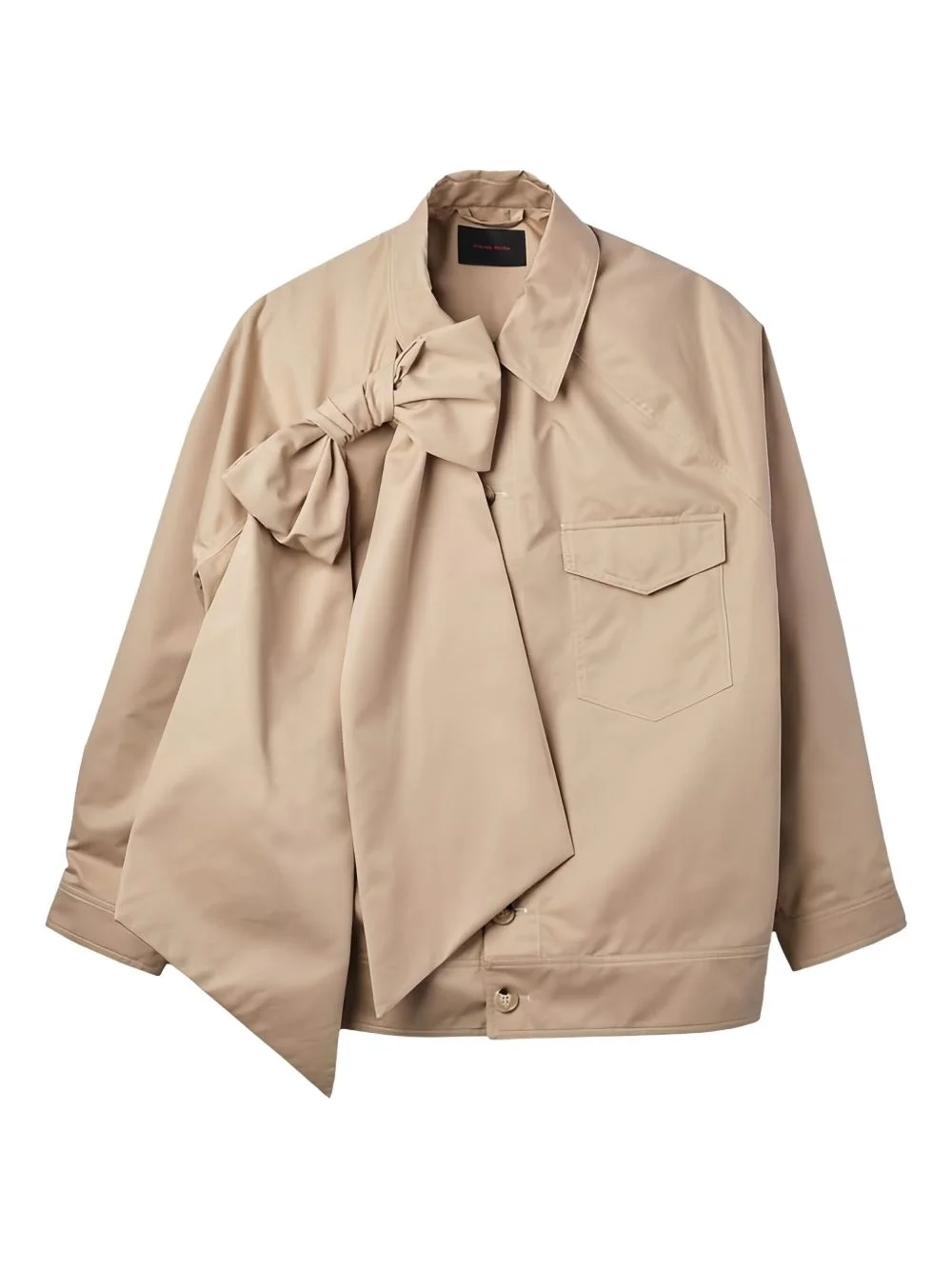 bow-detail dolman-sleeve jacket Highlights - Beige - Dolman sleeves - Bow detail - Button fastening - Chest patch pocket Imported Composition Fabric 100% Washing instructions Read Manufacturer Guidelines