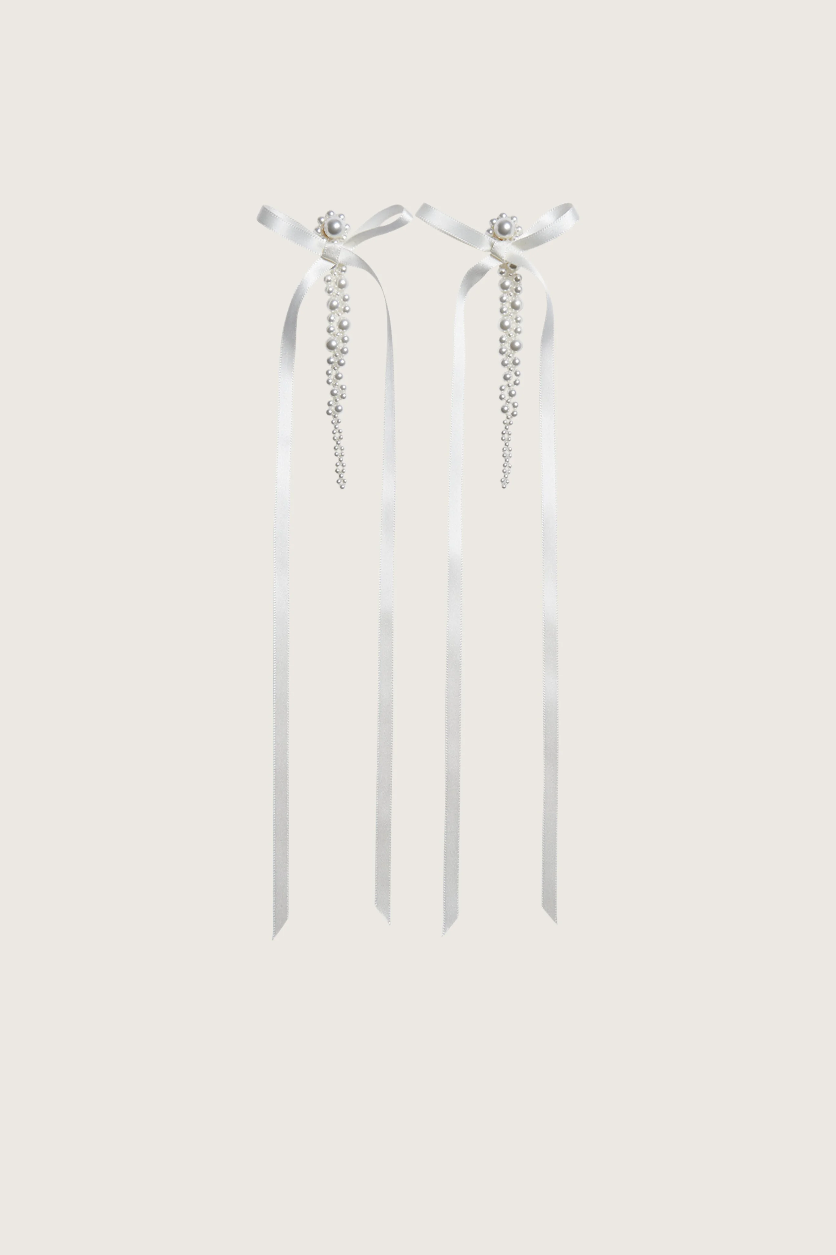 A signature Simone Rocha earring - a cascade of pearls with a satin ribbon bow. It features a post-stud fastening. Product Details Faux pearl drop earrings - Ribbon bow detail - Beaded daisy at base - Signature pearl beading Composition: 20% Glass Crystal, 65% Polyester, 15% Brass SKU: ERG410 0904 PEARL/IVORY