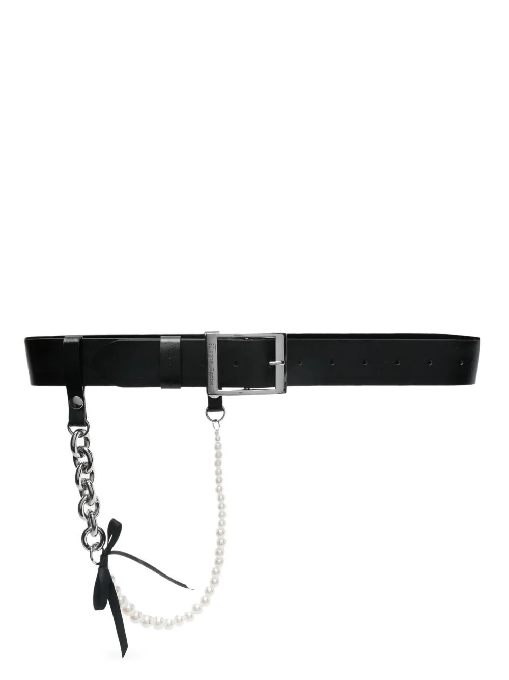 chain-pearl embellished belt Highlights - Black - Calf leather - Silver-tone buckle - Chain detail - Pearl embellishment - Ribbon bow Imported Composition Calf Leather 100%
