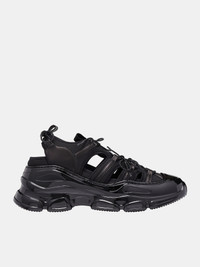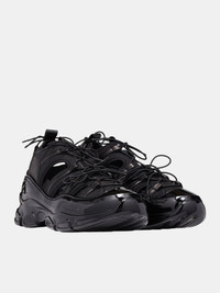 SIMONE ROCHA sneakers in black, Nappa leather & neoprene construction, low-top, upper cut-outs, back heel tab pull, lace-up fastening, rounded cap toe, sculpted rubber sole & treaded, suede lining. Made in Portugal Upper: Leather & Textile Sole: Rubber European Sizing