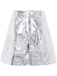 crinkled A-line leather shorts Highlights - Silver-tone - Lambskin - Crinkled finish - High-waisted - Belt loops - Front button and zip fastening - Two rear patch pockets - Straight hem - A-line Imported Composition Outer: Lamb Skin 100% Lining: Acetate 60%, Cupro 40% Washing instructions Specialist Cleaning