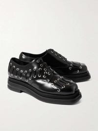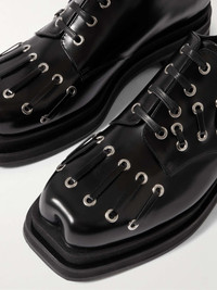 Eyelet-Embellished Glossed-Leather Brogues