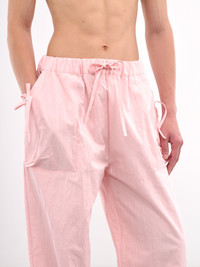 SIMONE ROCHA pants in rose, paneled construction, elasticated waistband, adjustable drawstring waist, inset pockets, back patch pocket, wide leg, relaxed fit. Standard Sizing Model is 6'1" wearing size M. Shoulders: 18" Chest: 36" Waist: 30"