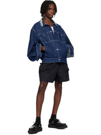 Non-stretch denim jacket. · Crystal-cut floral accents at spread collar · Button closure · Flap pockets · Welt pockets · Pleats at buttoned barrel cuffs · Crystal-cut leather logo patch at back collar · Adjustable pin-buckle tabs at back hem · Logo-engraved silver-tone hardware · Contrast stitching in white Supplier color: Indigo/Clear 100% cotton. Made in Portugal 251405M177001