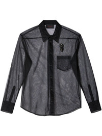 embellished sheer shirt Highlights - Black - Sheer - Crystal embellishment - Classic collar - Front button fastening - Long sleeves - Buttoned cuffs - Chest patch pocket - Curved hem Imported Composition Polyamide 100%