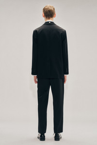 Venetian wool tailored jacket with draped flower sash. Secured to the lapel with a discreet hook and clasp, the sash was seen on the runway accommodating living blooms. Product Details Venetian wool jacket - From Look 45 on the runway - Sash detail at front - Signature daisy pearl on back - Front button closure - Double vent at back hem Composition: OUTER: 55% PL 45% WV // LINING: 100% VI (EXCL EMB) SKU: 6159D 1217 BLACK