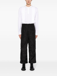 high-waisted cropped trousers Highlights - Black - High-waisted - Four front cargo pockets - Two rear flap pockets - Cropped Imported Composition Lining: Acetate 60%, Cupro 40% Outer: Polyester 100% SIZE & FIT Model measurements Height 6 ft 2 in(1.87 m) Bust/Chest 34.25 in(87 cm) Hips 36.22 in(92 cm) Waist 29.52 in(75 cm) FittingInformation Designed for a relaxed tapered leg, allowing a comfortable loose fit above the knee with a closer fit towards the calves Made from a midweight non-stretch fabric This piece fits true to size – take your usual size