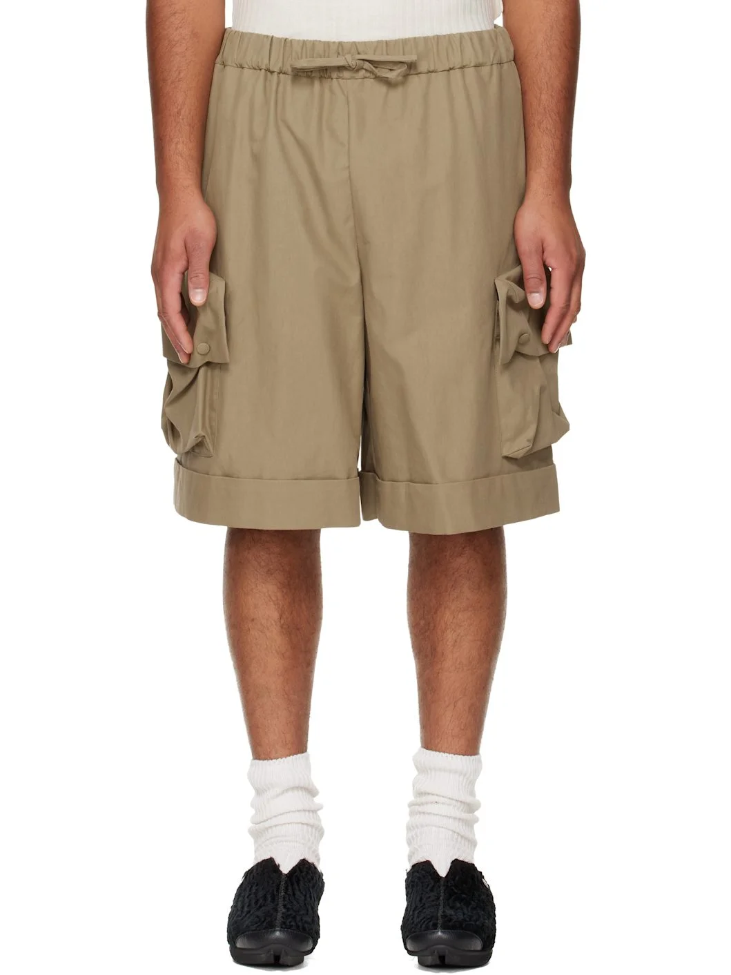 Cotton- and nylon-blend canvas cargo shorts. · Drawstring at elasticized waistband · Four-pocket styling · Rolled cuffs · Cargo pocket at outseams Supplier color: Stone Body: 70% cotton, 30% polyamide. Trim: 100% cotton. Made in Portugal 252405M193002