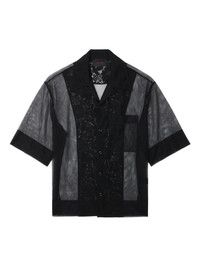 lace-panel mesh shirt Highlights - Black - Short sleeves - Revere collar - Button fastening Imported Composition Silk 100%, Polyamide 100% Washing instructions Read Manufacturer Guidelines
