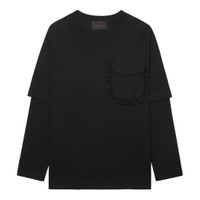 600071530BLK0XS / 5379 0553/00/BLACK - Layered construction with contrast panel - Ruffle-trimmed chest pocket - Long sleeves with fitted cuffs - Crew neckline - Premium cotton jersey construction - Relaxed fit through body - Signature Simone Rocha label at back neck Simone Rocha Layered Ruffle Pocket Long Sleeve T-Shirt delivers romantic femininity with contemporary edge through distinctive layered construction. Crafted from premium cotton jersey in sophisticated black, featuring signature ruffle detailing on the chest pocket and layered silhouette. The structured design and delicate feminine touches create a statement piece that embodies the brand's romantic gothic aesthetic.