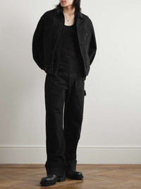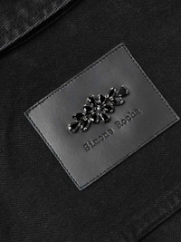 Simone Rocha's use of embellishments knows no bounds and her menswear is often as detailed as the women's line. This trucker jacket is made from denim and embellished with tonal crystals along the collar in the shape of blooming flowers. Wear yours with jeans in the black wash. Size & Fit - Those who are above 6'1"/ 185cm may wish to take the next size up - Designed for a boxy fit - Mid-weight, non-stretchy denim - Model is shown wearing a M - Model measures: chest 36"/ 92cm, height 6'2"/ 188cm Details & Care - Black denim - Button fastenings - 100% cotton