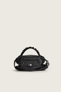 The Mini Biker Bag features belt strap handles and frilled leather detailing for a signature Simone Rocha finish. Product Details Calf leather bag - Belt buckle detail at front and side - Zip closure - Contrasting lining - Silver-tone hardware Composition: OUTER: 100% LEATHER | LINING: 100% COTTON SKU: BAG202F 0809 BLACK