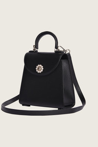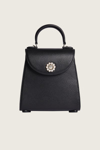 The Mini Valentine Bag exudes a sense of timeless sophistication. Adorning the front of the bag is a closure in a brushed gold. The floral-inspired hardware is surrounded by a ring of smaller pearls, creating a delicate accent. Product Details Mini top handle grain leather bag - Pearl daisy hardware - Detachable crossbody strap - Inner pocket detail Composition: 100% Leather SKU: BAG172 0787 BLACK