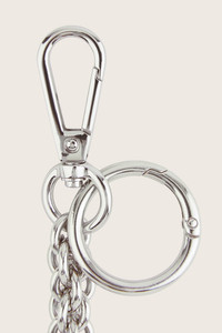 Simone Rocha key chain featuring a signature faux pearl charm, the lobster clasp makes it easy to attach to any bag. The chain is featured throughout the Autumn Winter 2025 Collection. Product Details Silver tone brass keychain - Faux pearl embellishment - Lobster clasp Composition: 12% Faux Pearl (Resin), 88% Brass SKU: KEY CHAIN 0904 PEARL