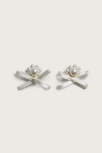 A crystal stud earring featuring a petite bow at the front, a Simone Rocha classic with an updated twist. Product Details Faux pearl earrings - Bow detail - Post stud fastening Composition: 67% Faux Pearl (Resin), 25% Brass, 8% Polyester SKU: ERG552 0904 PEARL