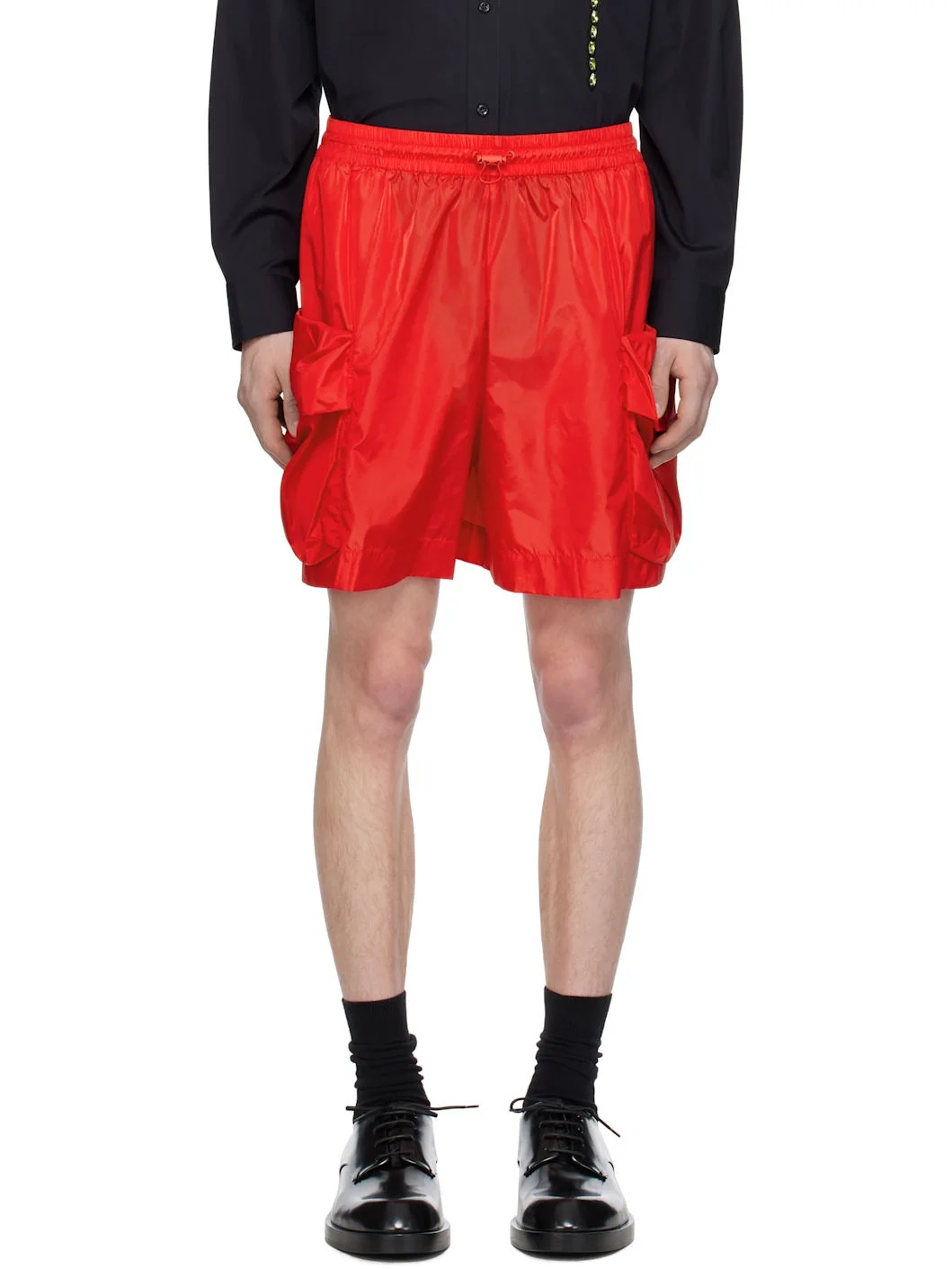 Nylon taffeta shorts. · Bungee-style drawstring at elasticized waistband · Two-pocket styling · Bellows pocket at outseams Supplier color: Red 100% nylon. Made in Portugal 251405M193013