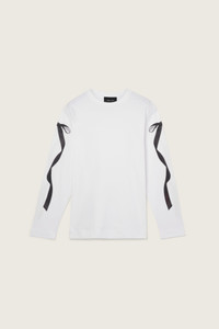 A long sleeve t-shirt featuring bow ribbons along the sleeves in our classic unisex t-shirt fit. Product Details Cotton jersey long sleeve graphic t-shirt - Ribbon print on sleeves Composition: 100% Cotton SKU: 5194P54-M 0569 WHITE/BLACK