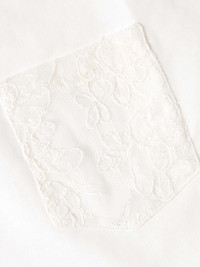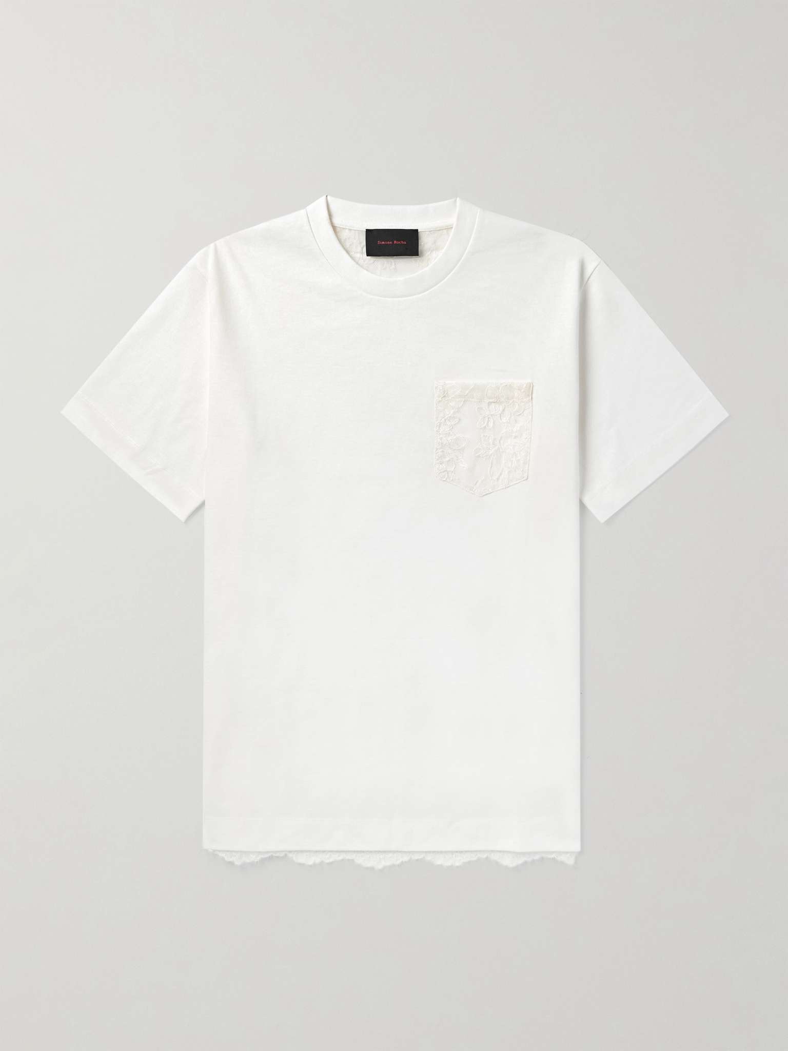 Simone Rocha challenges gender norms – the designer combines feminine-coded fabrics with traditionally masculine designs, so her collections feel truly unique. This T-shirt is made from cotton-jersey and has a sheer lace panel at the back. Size & Fit - Fits true to size. Take your normal size - Designed for a relaxed fit - Lightweight, slightly stretchy fabric - Model is shown wearing a M - Model measures: chest 38"/ 96cm, height 6'0"/ 183cm Details & Care - White cotton-jersey, ivory lace - Fabric1: 100% cotton; fabric2: 100% nylon; trim: 100% polyester
