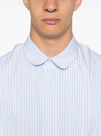 striped shirt Highlights - Blue/white - Cotton - Poplin texture - Vertical stripe print - Concealed front button fastening - Exposed-seam detailing - Plisse details - Rounded collar - Long sleeves - Buttoned cuffs - Asymmetric hem Imported Composition Cotton 100% SIZE & FIT Model measurements Height 6 ft 1 in(1.86 m) Bust/Chest 36.61 in(93 cm) Hips 37 in(94 cm) Waist 28.74 in(73 cm) FittingInformation Designed for a regular fit, allowing for a comfortably loose fit throughout the body Made from a midweight non-stretch fabric Washing instructions Machine Wash
