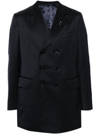 Venetian blazer Highlights - Navy blue - Double-breasted button fastening - Notched lapels - Crystal embellishment to the lapel - Chest welt pocket - Long sleeves with buttoned cuffs - Dart detailing - Two side flap pockets - Bead embellishment to the back - English rear vents - Multiple internal slip pockets - Satin lining - Straight hem Imported Composition Lining: Viscose 100% Outer: Polyester 55%, Virgin Wool 45% SIZE & FIT Model measurements Height 6 ft 2 in(1.87 m) Bust/Chest 38.18 in(97 cm) Hips 36.61 in(93 cm) Waist 29.13 in(74 cm) FittingInformation Designed for a slim fit, offering a comfortable fit that sits just away from the body The vented hem offers movement at the rear Made from a midweight non-stretch fabric