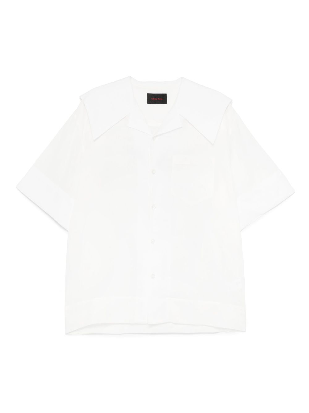 sailor-collar shirt Highlights - White - Front button fastening - Chest patch pocket - Crystal embellishment - Short sleeves Imported Composition Ramie 56%, Cotton 44% SIZE & FIT Model measurements Height 6 ft 0 in(1.84 m) Bust/Chest 37.79 in(96 cm) Hips 37 in(94 cm) Waist 31.49 in(80 cm) FittingInformation Designed to be unstructured, offering a loose fit throughout Made from a midweight non-stretch fabric