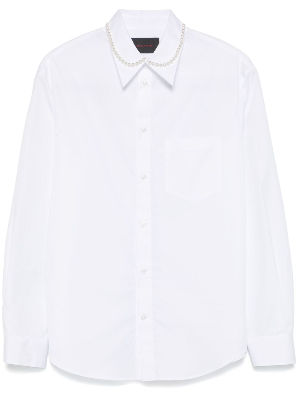 faux-pearl-embellishment shirt Highlights - White - Front button fastening - Buttoned cuffs - Chest patch pocket - Box-pleat detail Imported Composition Cotton 100% SIZE & FIT Model measurements Height 6 ft 2 in(1.87 m) Bust/Chest 36.22 in(92 cm) Hips 35.43 in(90 cm) Waist 29.52 in(75 cm) FittingInformation Designed to be unstructured, offering a loose fit throughout Made from a midweight non-stretch fabric