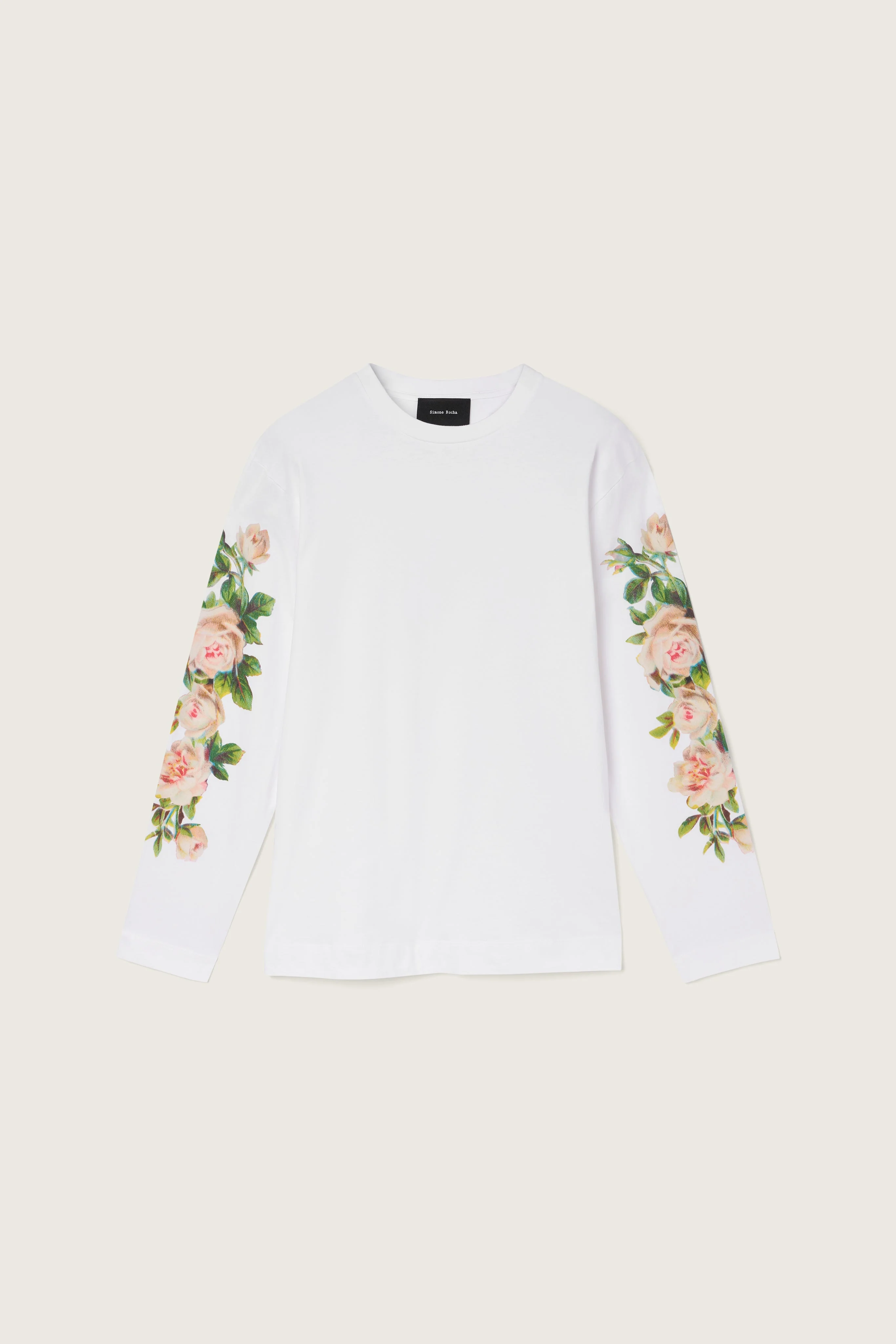 A long sleeve t-shirt featuring rose clusters along the sleeves in our classic unisex t-shirt fit. Product Details Cotton jersey long sleeve graphic t-shirt - Rose flower print on sleeves Composition: 100% Cotton SKU: 5194P52-M 0569 WHITE
