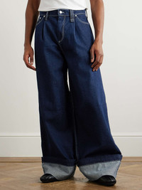 Puddle Wide-Leg Pleated Crystal-Embellished Jeans