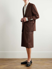 Simone Rocha's shorts are a modern update on traditional tailoring. Woven with touches of wool, they have smart pressed creases and a comfortable elasticated drawstring waistband. Wear them with the matching blazer. Size & Fit - Fits true to size. Take your normal size - Relaxed-straight leg, low-crotch style - Adjustable at the waist - Mid-weight, non-stretchy fabric - Model is shown wearing a S - Model measures: waist size 30, height 6'2"/ 188cm Details & Care - Chocolate polyester and wool-blend - 55% polyester, 45% wool - Dry clean