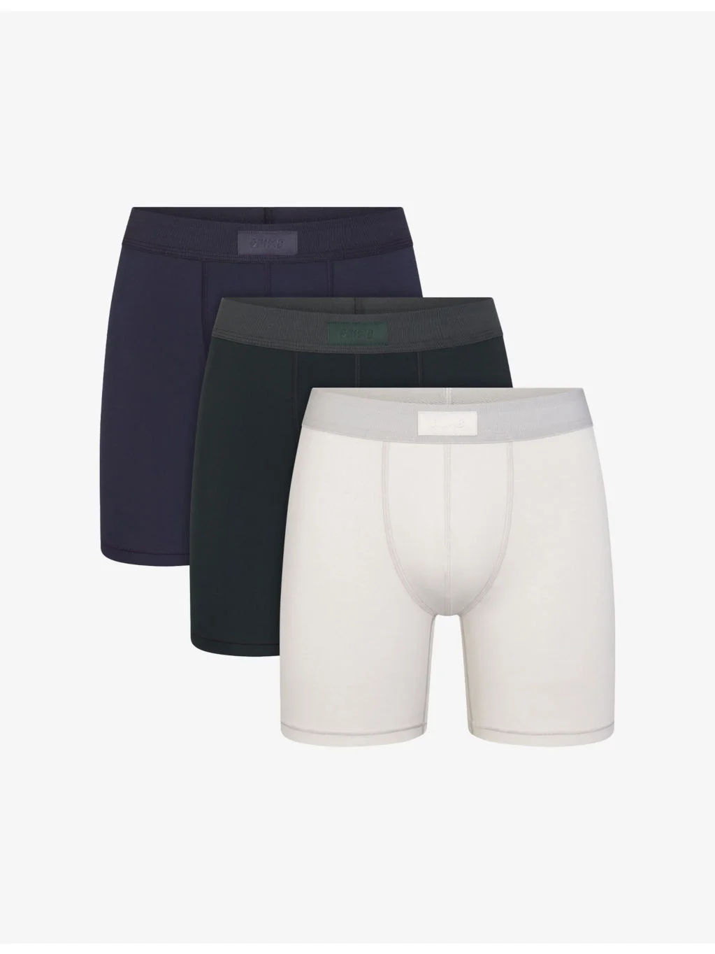 PRODUCT DETAILS - SKIMS pack of three cotton-jersey boxer briefs - 47% cotton, 47% modal, 6% elastane - Mid-rise, branded elasticated waistband, supportive pouch at centre front - Machine wash cold - Model is 6ft 3in/1.91m and wears a size medium - Lightweight, stretchy - For hygiene reasons, we are unable to exchange or refund this product, unless faulty. Ref: R04538439