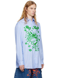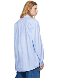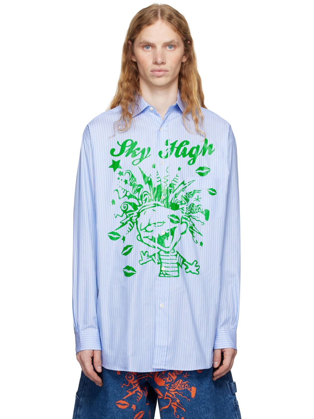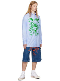 Oversized deadstock cotton oxford cloth shirt. Stripes throughout. · Spread collar · Button closure · Logo graphic printed at front · Shirttail hem · Single-button barrel cuffs · Box pleat at back yoke Featuring artwork by Vanna Youngstein. Supplier color: Blue stripe 100% cotton. Made in France 242219M192003