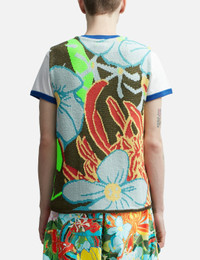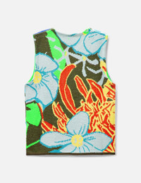 - Sky High Farm Workwear - Camo Knit Vest - Reversible design - Floral motif camo print throughout - Round neckline - Straight hem - Color: Multicolor - Material: 22% Polyester, 21% Wool, 21% Acrylic, 14% Organic Cotton, 22% Other - See more Knitwear and Clothing SIZING Men - Model wears size M - Model measures: Height 190cm, Chest 34”/84cm, Waist 28”/70cm, Hip 35”/90cm - Model wears size S - Model measures: Height 179cm, Chest 33”/83cm, Waist 24.8”/63cm,Hip 35’’/89cm