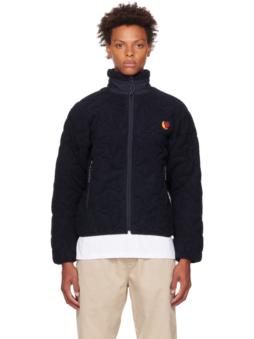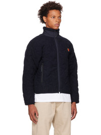 Insulated quilted recycled wool-blend fleece and taffeta jacket. · Paneled construction · Stand collar · Zip closure · Rubberized logo patch at front · Zip pockets · Textile logo flag at side seam · Full taffeta lining Supplier color: Navy