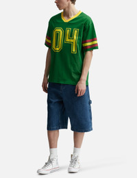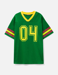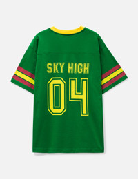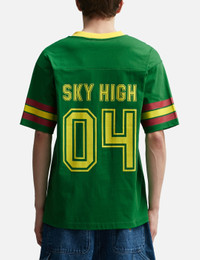 - Sky High Farm Workwear - Samira Nasr V Neck Sports Tshirt - Sky High Farm X Samira Nasr collaboration - Samira Nasr, Editor in Chief of Harper’s Bazaar U.S - Oversized - V-neck - Elongated short sleeves - Block stripes on sleeves - "04" print on the front and back - SKY HIGH on the top back - Color: Green - Material: 100% Organic Cotton - See more Shirts and Clothing SIZING - Model wears size M - Model measures: Height 187cm, Chest 37”/96.5cm, Waist 30”/76.2cm, Hip 37”/94cm