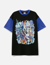 - Sky High Farm Workwear - Small World Graphic T-shirt - Short sleeve - Slightly boxy fit - Color block design - Text print on the front chest - Screen print graphic on the back - Color: Black - Material: 50% Organic Cotton, 50% Cotton - See more T-Shirts and Clothing SIZING - Model wears size M - Model measures: Height 187cm, Chest 37”/96.5cm, Waist 30”/76.2cm, Hip 37”/94cm