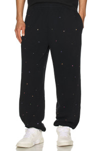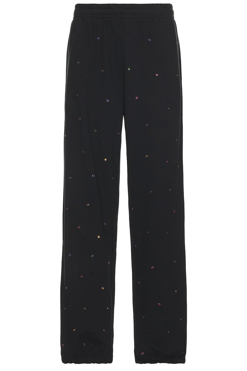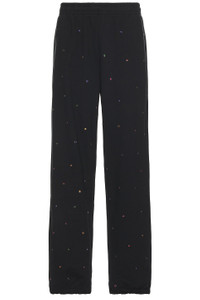 Details - 100% organic cotton - Dry clean only - Front drawstring tie closure - Elasticized waistband - Side seam pockets - Back slip pockets - Allover embellished rhinestone detailing - Heavyweight knit fabric - Made in Portugal - Our Style No. SHFF-MP10 - Manufacturer Style No. SHF07P041