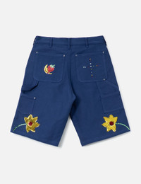 - Sky High Farm Workwear - Workwear Sequin Embroidered Flowers Denim Shorts - Deadstock cotton exterior - Embroidered flowers at leg - 5 pockets - Straight leg - Due to the nature of deadstock materials, colors will slightly vary for each product - Color: Blue - Material: 100% Cotton - See more Shorts and Clothing - Vendor Code: SHF03P011