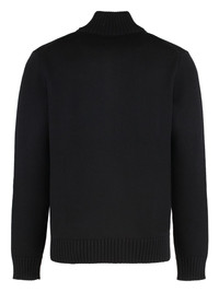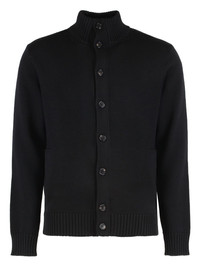 button high-neck cardigan Highlights - Black - Front button closure - Two side pockets - High neck - Long sleeves - Ribbed hem and cuffs Made in Italy Composition Virgin Wool 100% Washing instructions Read Manufacturer Guidelines
