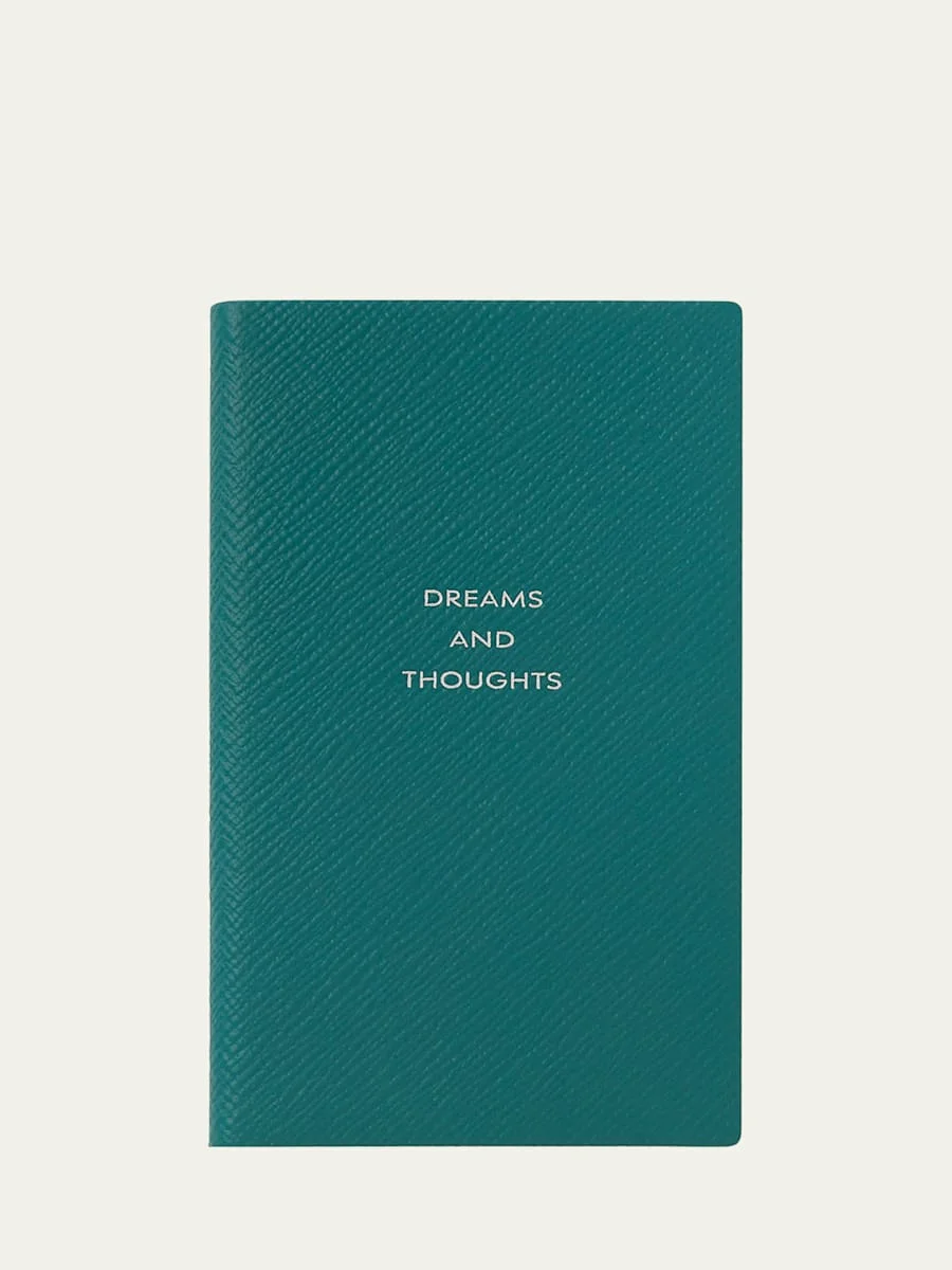 Bound in signature crossgrain lambskin leather 128 leaves of giltedged, pale blue Featherweight paper with indexed sections Approx. 5.5"L x 3.4"W Wipe clean Imported