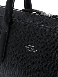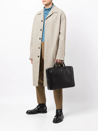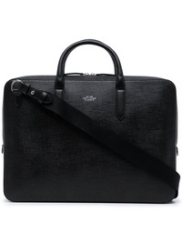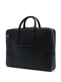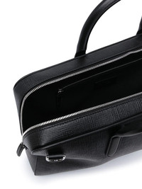 Panama textured leather briefcase black leather textured finish silver-tone logo lettering all-around zip fastening two rounded top handles adjustable detachable shoulder strap main compartment internal zip pocket Made in Italy Composition Leather 100% SIZE & FIT Model measurements Height 6 ft 2 in(1.87 m) Bust/Chest 35.43 in(90 cm) Hips 35.43 in(90 cm) Waist 29.13 in(74 cm) Measurement DEPTH 2.55 in(6.5 cm) HANDLE 3.93 in(10 cm) HEIGHT 11.22 in(28.5 cm) STRAP 20.86 in(53 cm) WIDTH 15.55 in(39.5 cm)