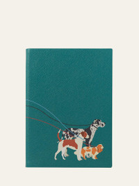 Notebook featuring a dog motif Leather cover Paper pages Approx. 5.5"L x 3.4"W Imported