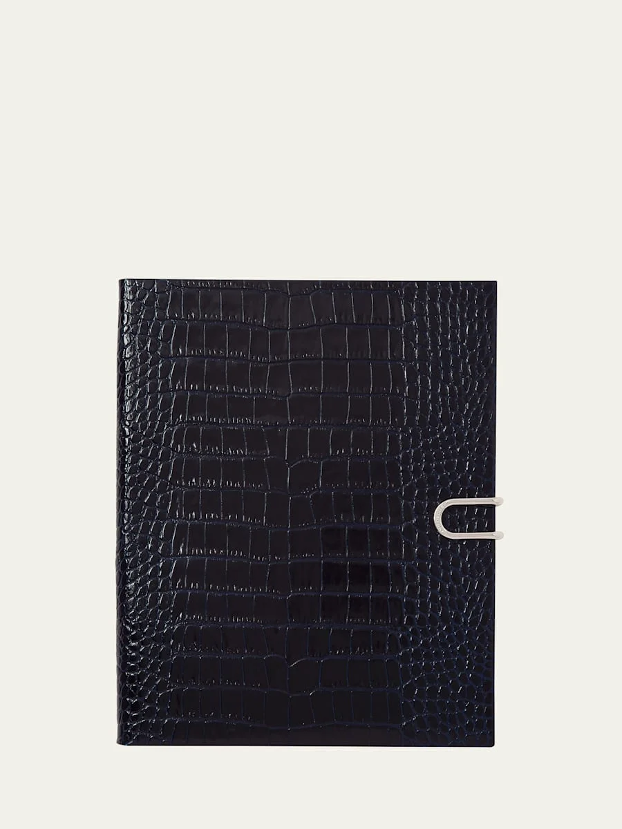 Add a touch of luxury to your weekday workspace with the Portobello Desk Agenda. Crafted in Smythson's signature Mara crocembossed leather with a glossy finish, its expansive weektoview pages allow for the most meticulous planning with an endnotes section to jot down ideas as you work. Silvertone slide keeps the agenda closed when not in use Runs from November 17, 2025 to January 24, 2027 Giltedged, pale blue Featherweight paper Vertical weektoview layout with notes pages Indexed monthly tabs Interior slip pocket Three ribbon bookmarks Approx. 10"L x 8.5"W Imported