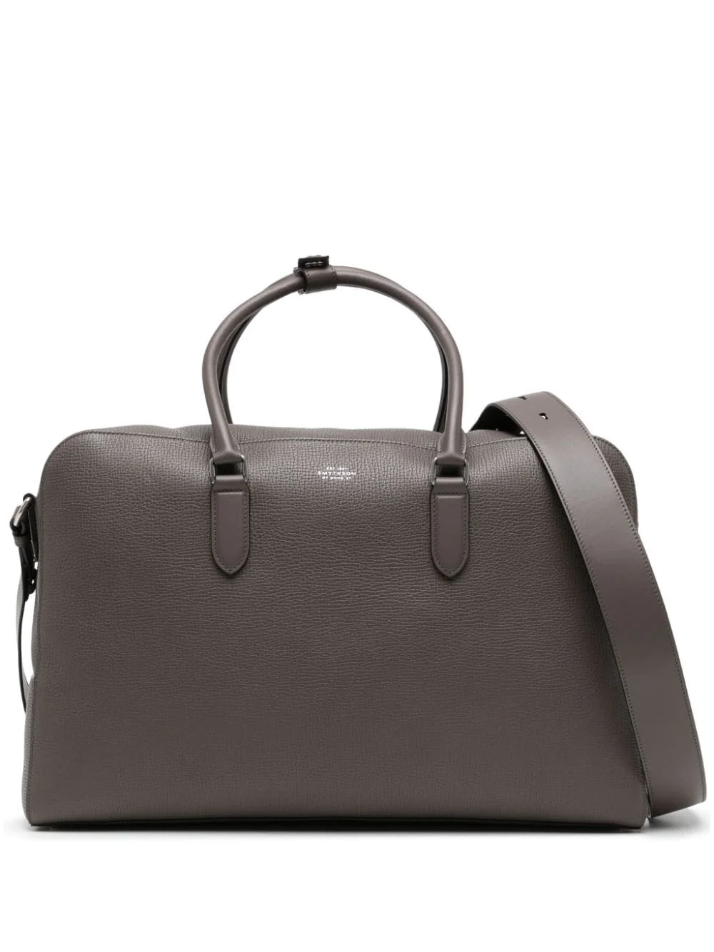 Soft Travel leather bag Highlights - Taupe grey - Calf leather - Pebbled texture - Logo stamp to the front - Two rolled top handles - Adjustable detachable shoulder strap - Top zip fastening - Main compartment - Internal zip-fastening pocket - Multiple internal slip pockets - Metal feet Imported Composition Calf Leather (top grain) 100% Lining: Fabric 100% SIZE & FIT Measurement DEPTH 9.44 in(24 cm) HANDLE 6.69 in(17 cm) HEIGHT 11.81 in(30 cm) STRAP 19.68 in(50 cm) WIDTH 18.11 in(46 cm)