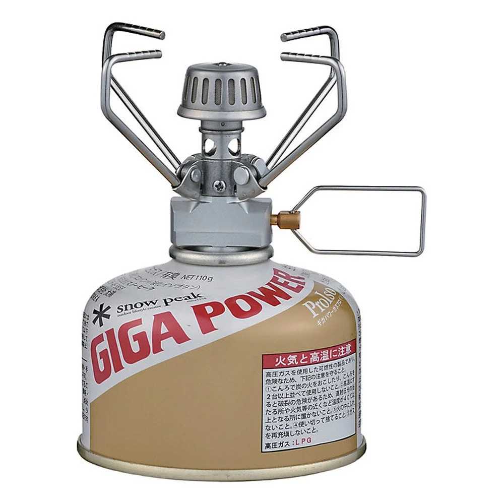 Snow Peak | SKU: GS-100AR2-US Made of stainless steel and aluminum, the GigaPower Stove Auto Renewed exemplifies a combination of elegant design and durable functionality. One of Snow Peak's most iconic products, it's the perfect lightweight stove for cooking outdoors. With four foldable arms offering maximum stability and 10,000 BTUs for rapid boiling time, the GigaPower Stove Auto Renewed is an essential component to any camping or backpacking set. Pair the GigaPower Stove Manual Renewed with the Trek 700 Titanium Cookset or Trek 900 Titanium Cookset for the ultimate ultralight backcountry set. Please note fuel is sold separately.