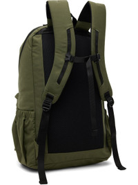 Nylon taffeta backpack in green. · Webbing carry handle · Adjustable padded shoulder straps · Press-release sternum strap · Zip pocket at face · Patch pocket at sides · Zip pocket at padded back face · Zip closure · Zip pocket at interior · Laptop compartment · Mesh lining · H18" x W11" x D5.75" Supplier color: Olive Textile. Made in Viet Nam 252419M166001