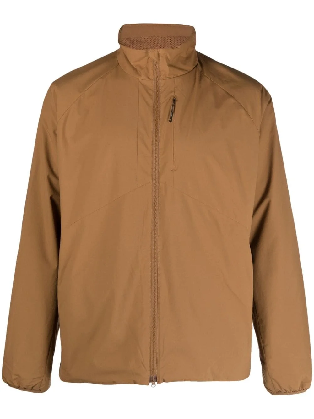 Octa high-neck jacket Highlights - Caramel brown - High neck - Front two-way zip fastening - Long sleeves - Elasticated cuffs - Zip-fastening chest pocket - Straight hem Imported Composition Lining: Polyester 100% Outer: Polyester 100%, Artificial Leather 100%
