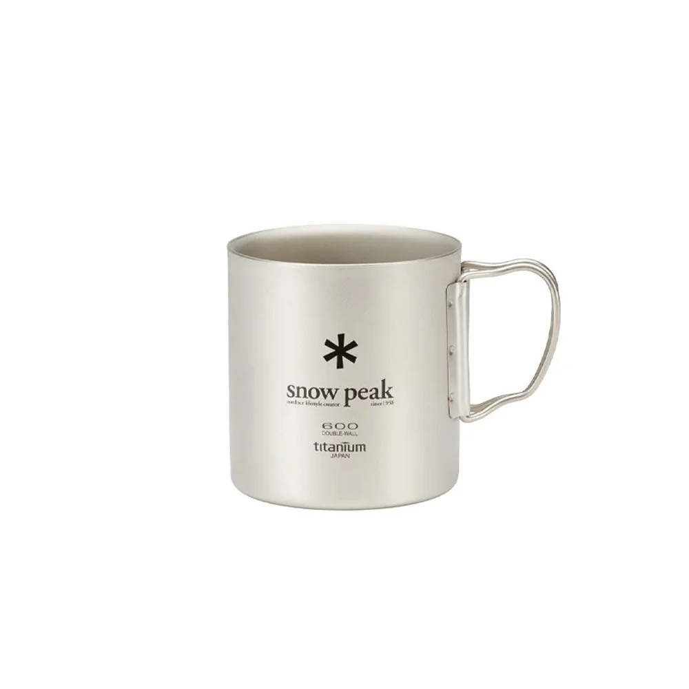 Snow Peak | SKU: MG-054R Crafted from Japanese Titanium, the Ti-Double 600 is an ultralight insulated mug. Use it during your day-to-day or add it to backpacking kits for a reliable drinkware staple. The double-wall insulation will keep beverages hot or cold and the foldable handles offer compact storage. Pair the Ti-Double 600 with the Titanium French Press for an on-the-go coffee set. Please note: double-wall titanium cannot be used for cooking or placed over a heat source. MATERIAL Titanium CONTENTS Ti-Double 600 Mug
