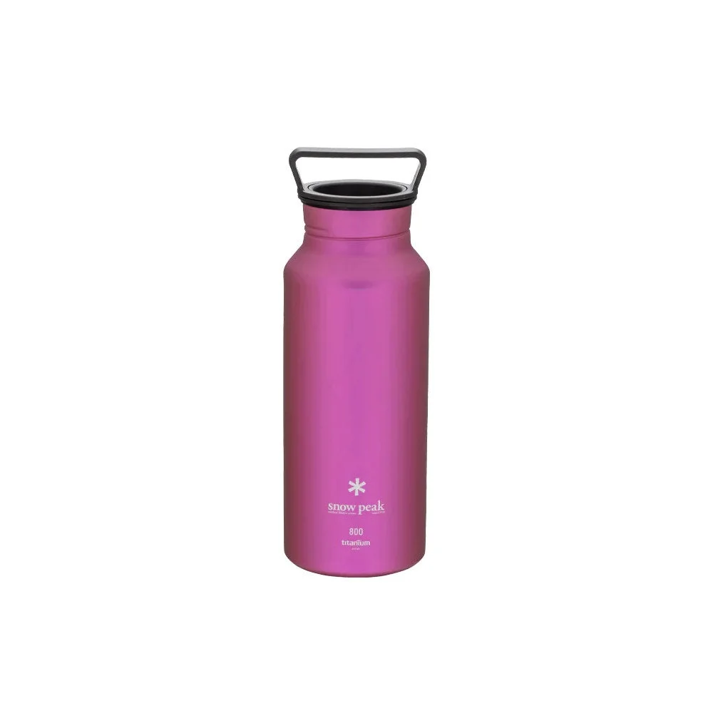 Snow Peak | SKU: TW-800-PI The Titanium Aurora Bottle is an anodized titanium drinking vessel. Designed in Japan, the bottle is made of 1mm thick titanium that is ultralight and durable. The titanium leaves no aftertaste for an enjoyable drinking experience regardless of beverage. Clean with mild soap and warm water. WEIGHT 5.2 oz SIZE D 3" H 9" CAPACITY 27 fl oz